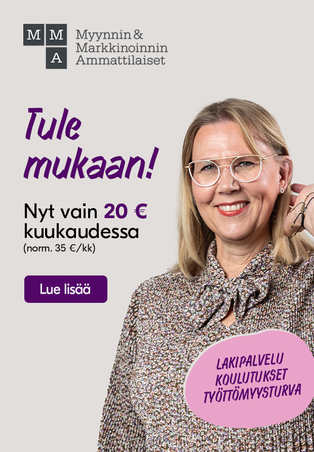 Me tuemme myynnin ja markkinoinnin eturintaman tekijöitä työelämän erilaisissa käänteissä: palveluidemme avulla voit pitää ammattitaidostasi hyvää huolta, kun taas työsuhdejuristimme ja työttömyysturvamme auttavat sinua kiperimmissäkin tilanteissa.